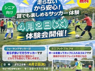 詳細はこちら『3/26中止→4/2に延期のお知らせ』【⚽無料体験会⚽】ウォーキングサッカー&ミニフットゴルフ 体験会 開催!【誰でも楽しめる】