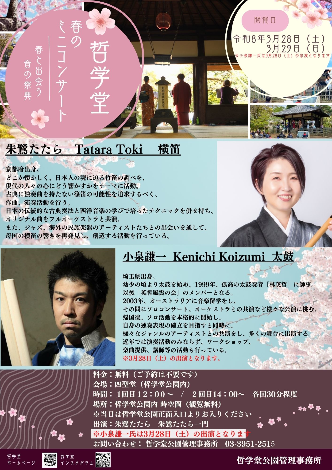 | 出 演 | 朱鷺たたら 朱鷺たたら一門 小泉謙一 ※3/28(土)のみ |